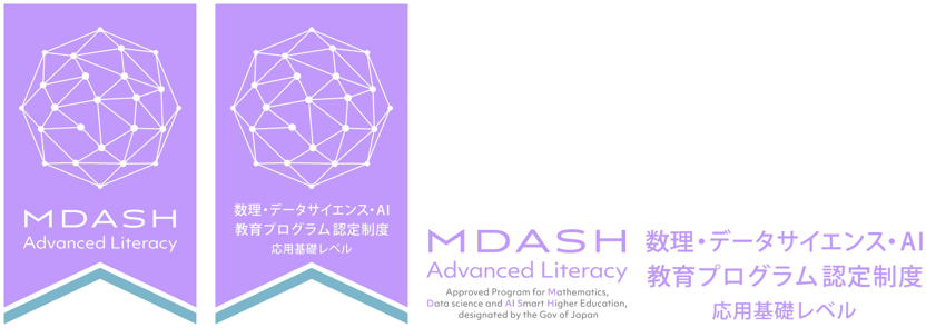 本プログラムは、文部科学省「数理・データサイエンス・AI教育プログラム認定制度(応用基礎レベル)」に認定されています(認定の有効期限:令和11年3月31日)。
