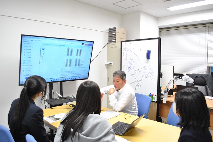 - 教授の観点は私達が考えていたものとは大きく違い、専門的な考え方が必要なことがわかりました。課題点についての的確な指摘や研究方法のアドバイスはとても参考になりました。ありがとうございました。